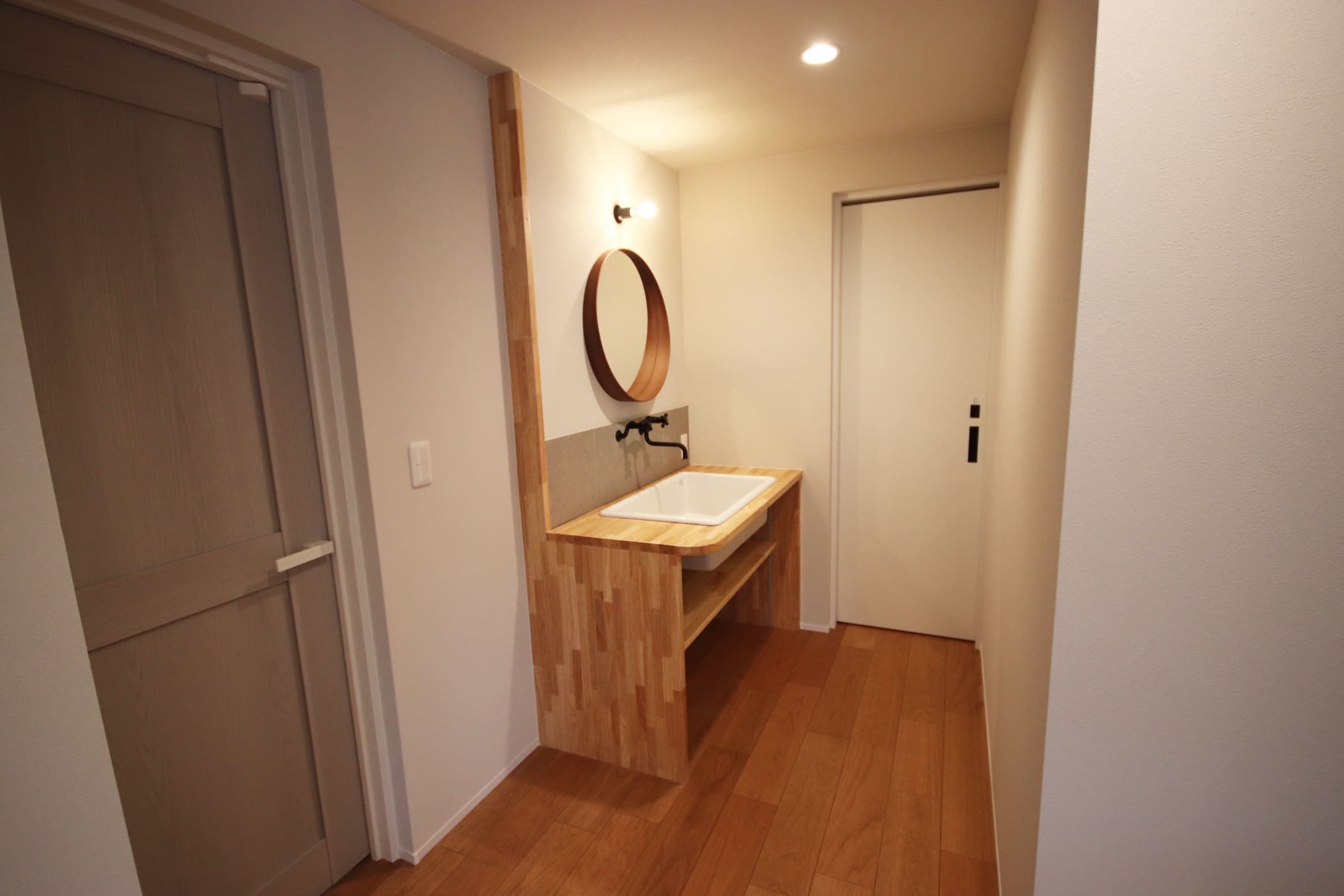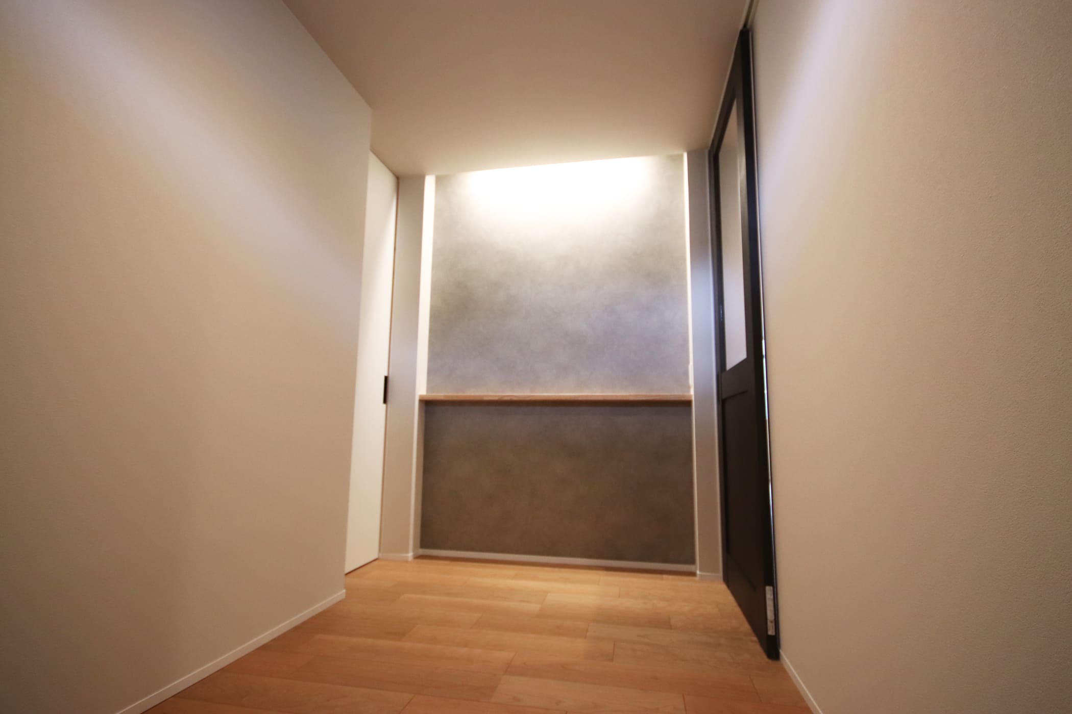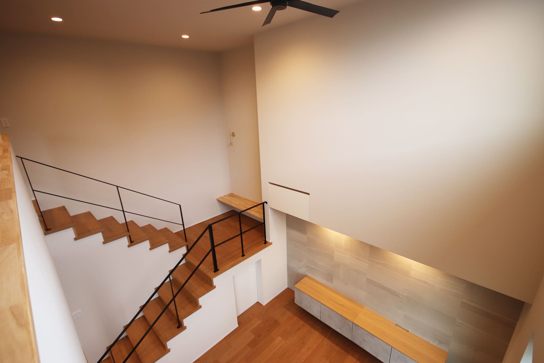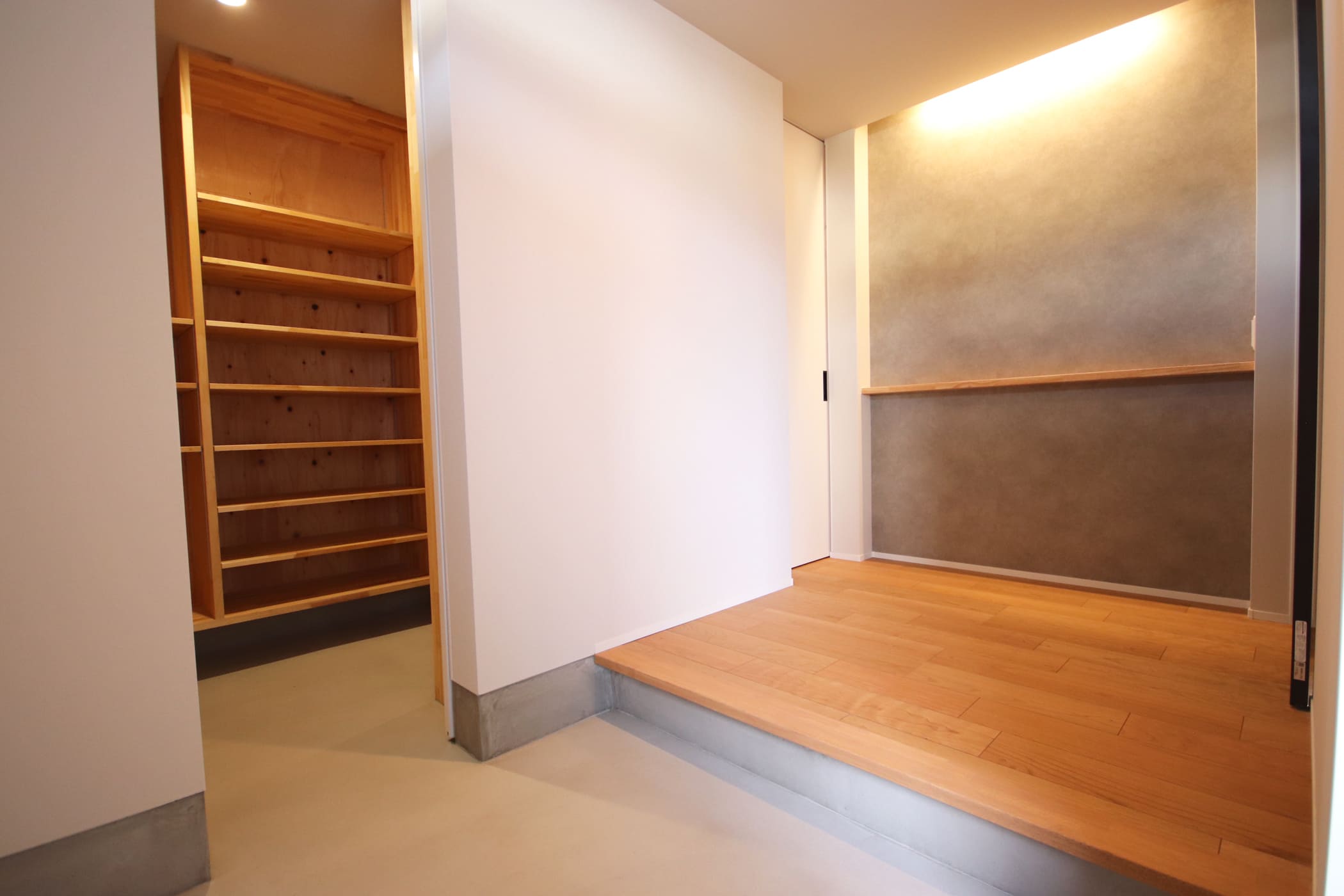 玄関ドアを開けると、そこには無骨さと温かさが同居する洗練された空間が広がります。